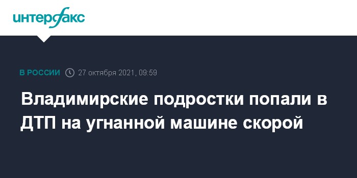 Москва. 27 октября. INTERFAX.RU - Двое подростков подозреваются х в угоне машины скорой помощи в городе Меленки Владимирской области, сообщает управление СКР по региону.