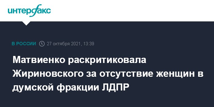 "Я публично покритиковала вашего лидера. По итогам выборов в Государственную думу, только представьте, от ЛДПР, если я не ошибаюсь, мы сейчас завершаем анализ, нет ни одной женщины-депутата. Ну это что такое вообще? А женщины голосуют за Владимира Вольфовича. Может быть, потому и его рейтинг упал, что он так относится", - сказала Матвиенко на совместном заседании оргкомитета и совета Евразийского женского форума, обращаясь к сенатору Елене Афанасьевой.