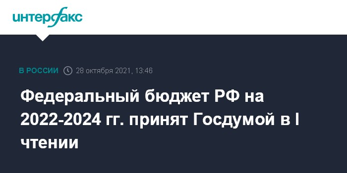 Федеральный бюджет РФ на 2022-2024 гг. принят Госдумой в I чтении