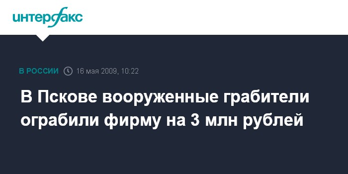 В Пскове вооруженные грабители ограбили фирму на 3 млн рублей