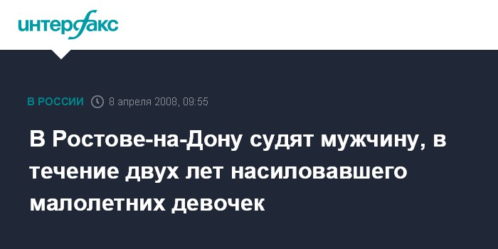 Ростов-на-Дону. 8 апреля. INTERFAX.RU - В Ворошиловском районном суде Ростова-на-Дону рассматривается дело в отношении местного жителя, обвиняемого в изнасиловании малолетних.