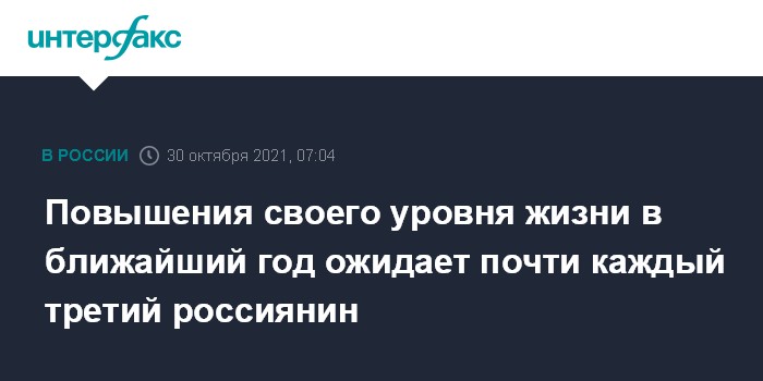 Москва. 30 октября. INTERFAX.RU - Около трети россиян (31%) ожидают в течение ближайшего года повышения своего уровня жизни и уровня жизни своих семей, свидетельствуют данные опроса Фонда "Общественное мнение" (ФОМ), поступившие в "Интерфакс".
