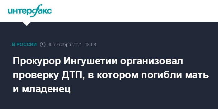 Ранее МВД по республике сообщало, что поздно ночью 29 октября на ФАД "Кавказ" в районе Назрановской крепости водитель автомобиля "ВАЗ-2115", предположительно, совершая маневр обгона, столкнулся с автомобилем "Камаз", двигавшимся во встречном направлении. В результате ДТП погибла пассажирка "ВАЗа", при доставлении в больницу скончался новорожденный ребенок.