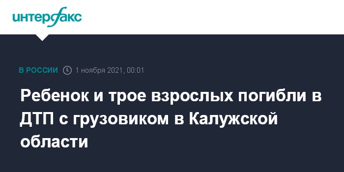 Ребенок и трое взрослых погибли в ДТП с грузовиком в Калужской области