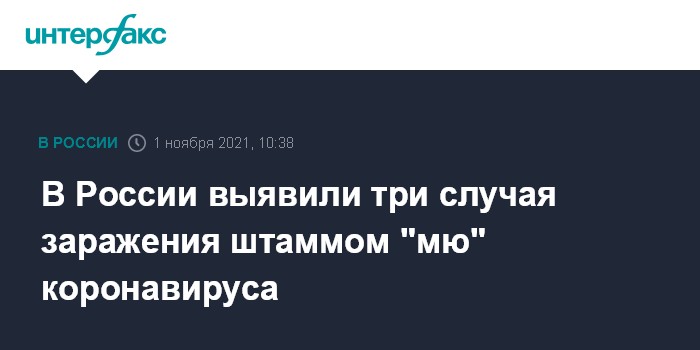 Москва. 1 ноября. INTERFAX.RU - В России был выявлен всего один случай заражения штаммом коронавируса "лямбда" и три случая - вариантом "мю", сообщил директор ЦНИИ эпидемиологии Роспотребнадзора Василий Акимкин.