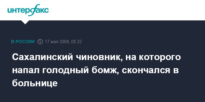 Сахалинский чиновник, на которого напал голодный бомж, скончался в больнице