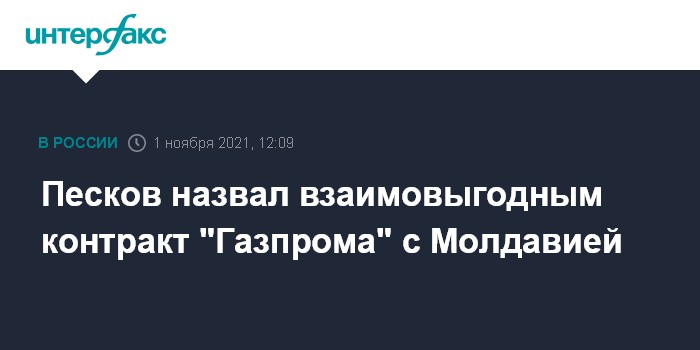 Песков назвал взаимовыгодным контракт "Газпрома" с Молдавией