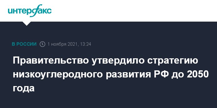 Москва. 1 ноября. INTERFAX.RU - Правительство РФ утвердило стратегию социально-экономического развития России с низким уровнем выбросов парниковых газов до 2050 года, сообщила в понедельник пресс-служба кабинета министров.