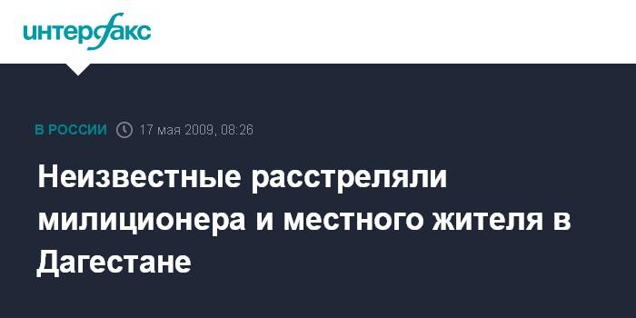 Хасавюрт. 17 мая. ИНТЕРФАКС-ЮГ - Старший лейтенант милиции расстрелян неизвестными в дагестанском Хасавюрте, также был убит местный житель, сообщили агентству "Интерфакс-Юг" в городском отделе внутренних дел.
