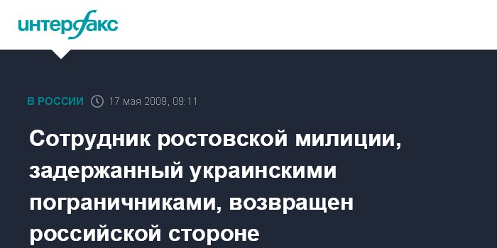 Сотрудник ростовской милиции, задержанный украинскими пограничниками, возвращен российской стороне