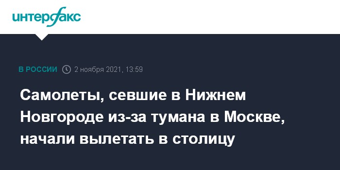 Москва. 2 ноября. INTERFAX.RU - Самолеты, летевшие в Москву и приземлившиеся во вторник в аэропорту Нижнего Новгорода из-за неблагоприятных условий в столице, начали вылетать в пункт назначения.