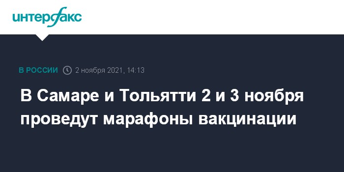 Москва. 2 ноября. INTERFAX.RU - 2 ноября в Самаре, а 3 ноября в Тольятти проведут акции "Единый день вакцинации" на крупнейших городских площадках, сообщила пресс-служба областного правительства.