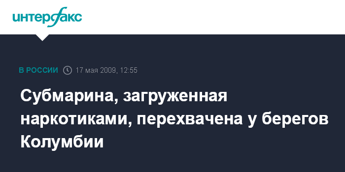 Лондон. 17 мая. INTERFAX.RU - Американский военный корабль перехватил подводную лодку, которая перевозила наркотики, сообщает в воскресенье британская телерадиокорпорация Би-Би-Си со ссылкой на представителей ВМФ Колумбии.