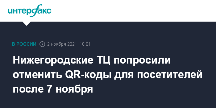 Иностранные туристы массово аннулируют туры в Россию из-за отсутствия QR-кодовЧитать подробнееВладельцы 24 объектов коммерческой недвижимости просят главу региона не продлевать режим нерабочих дней после 7 ноября и рассмотреть вопрос "скорейшей отмены требований о контроле QR-кодов для посетителей торговых центров".