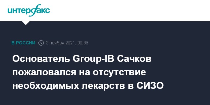 Основатель Group-IB Сачков пожаловался на отсутствие необходимых лекарств в СИЗО