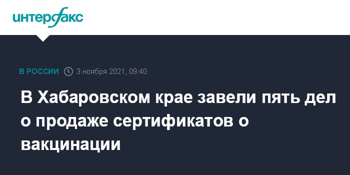 В Хабаровском крае завели пять дел о продаже сертификатов о вакцинации
