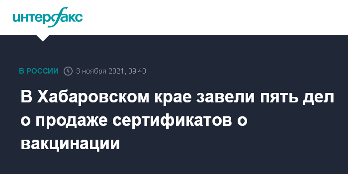 "Обращаю внимание, что сейчас в стране более 500 уголовных дел заведено по факту выдачи поддельных сертификатов, из них пять – в Хабаровском крае. (...) Компетентные органы этим вопросом очень серьезно занимаются", - сказал Никонов на пресс-конференции в хабаровском пресс-центре "Интерфакса" в среду.