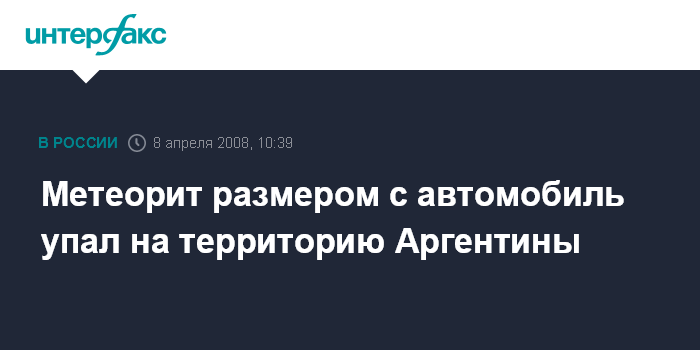 Буэнос-Айрес. 8 апреля. INTERFAX.RU - Крупный метеорит упал на территорию аргентинской провинции Энтре-Риос.
