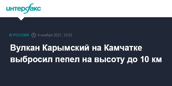 Москва. 4 ноября. INTERFAX.RU - Вулкан Карымский на Камчатке выбросил пепел на высоту до 10 км над уровнем моря, сообщил в четверг сотрудник Института вулканологии и сейсмологии (ИВиС) Дальневосточного отделения РАН Дмитрий Мельников.