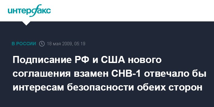 Подписание РФ и США нового соглашения взамен СНВ-1 отвечало бы интересам безопасности обеих сторон
