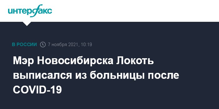 Москва. 7 ноября. INTERFAX.RU - Мэр Новосибирска Анатолий Локоть, госпитализированный в конце октября с COVID-19, выписался из больницы и приступил к работе, сообщил "Интерфаксу" пресс-секретарь градоначальника Глеб Черепанов.