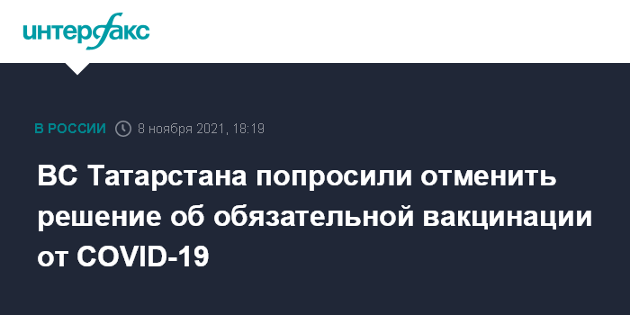 ВС Татарстана попросили отменить решение об обязательной вакцинации от COVID-19