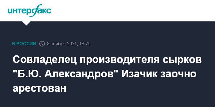 Совладелец производителя сырков "Б.Ю. Александров" Изачик заочно арестован