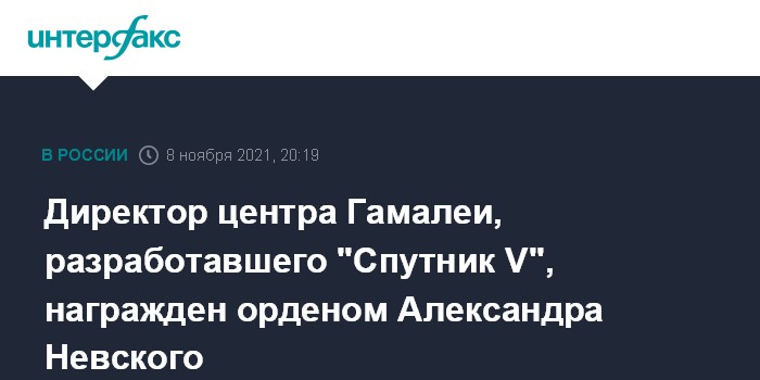 Директор центра Гамалеи, разработавшего "Спутник V", награжден орденом Александра Невского