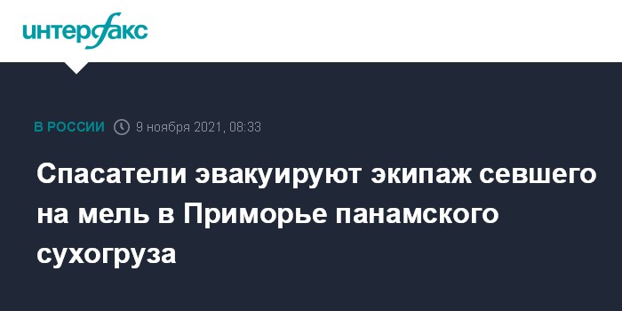 Ранее сообщалось, что у берегов Приморья в районе Находки сел на мель контейнеровоз Rise Shine под флагом Панамы, на борту находятся 14 членов экипажа, россиян среди них нет.