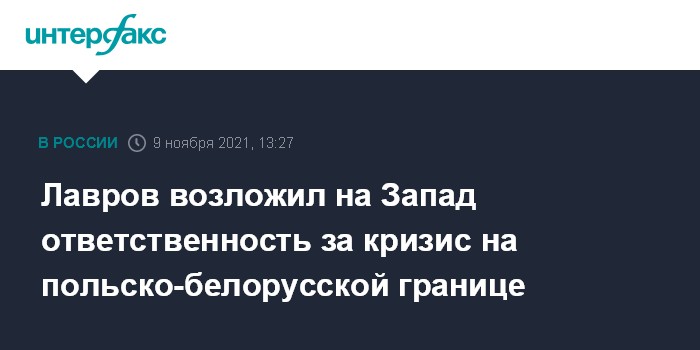 Москва. 9 ноября. INTERFAX.RU - Миграционный кризис на белорусско-польской границе спровоцирован действиями Запада на Ближнем Востоке, при его урегулировании должно соблюдаться международное право, заявил глава МИД РФ Сергей Лавров.