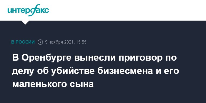 Москва. 9 ноября. INTERFAX.RU - Ленинский районный суд Оренбурга во вторник вынес приговор по делу об убийстве зимой 2018 года в Оренбурге бизнесмена и его семилетнего сына.