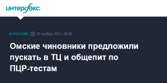 Москва. 10 ноября. INTERFAX.RU - В Омской области штаб по экономике предложил оперштабу по борьбе с коронавирусом ввести доступ граждан в торговые центры и предприятия общепита по результатам ПЦР-тестов, сообщил в инстаграме вице-губернатор региона Дмитрий Ушаков.