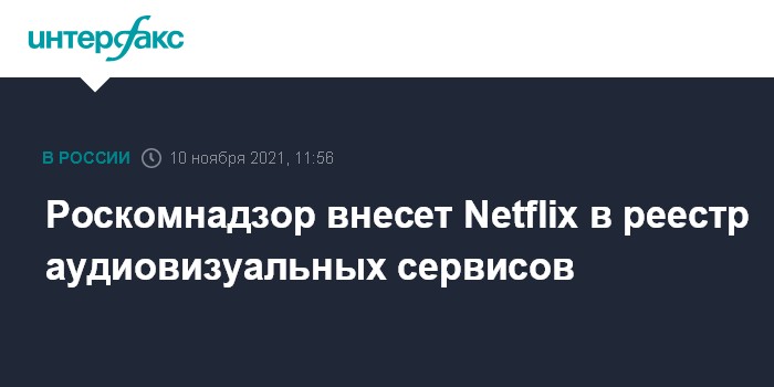 Москва. 10 ноября. INTERFAX.RU - Роскомнадзор направил в Netflix запрос для его включения в реестр аудиовизуальных сервисов (АВС), заявил начальник управления контроля и надзора в сфере электронных коммуникаций РКН Евгений Зайцев. Он сказал это в Общественной палате на круглом столе о регулировании деятельности онлайн-кинотеатров.