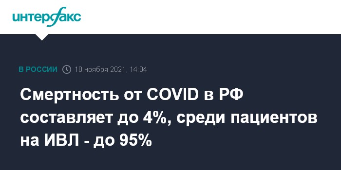 Смертность от COVID в РФ составляет до 4%, среди пациентов на ИВЛ - до 95%