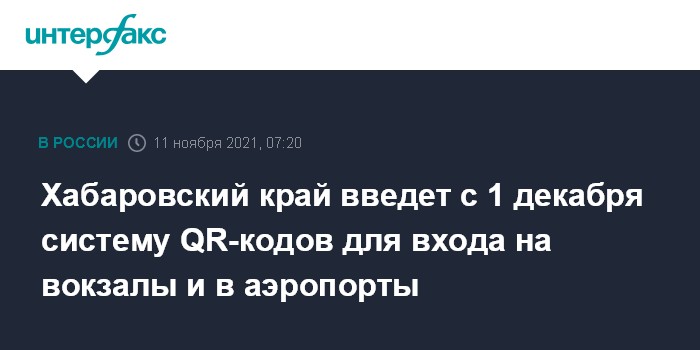 Ранее Никонов заявлял, что QR-код может потребоваться всем, кто намерен прилететь в Хабаровский край или улететь из него, если ситуация с распространением коронавируса в регионе не улучшится.