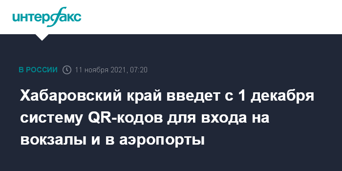 Хабаровский край введет с 1 декабря систему QR-кодов для входа на вокзалы и в аэропорты