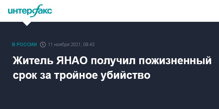 Москва. 11 ноября. INTERFAX.RU - Ранее судимый житель села Газ-Сале Тазовского района Ямало-Ненецкого автономного округа приговорен к пожизненному заключению за три убийства, кражи и грабеж, сообщили в СК.