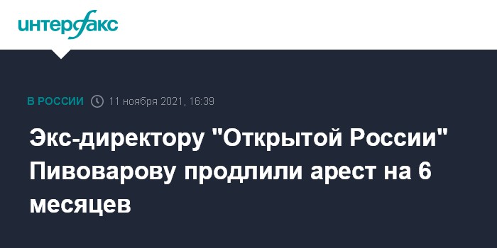 Москва. 11 ноября. INTERFAX.RU - Ленинский районный суд Краснодара еще на полгода оставил под стражей бывшего исполнительного директора движения "Открытая Россия" (признана нежелательной на территории РФ) Андрея Пивоварова, сообщает пресс-служба суда.