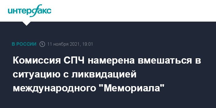 Москва. 11 ноября. INTERFAX.RU - Комиссия по политическим правам Совета при президенте РФ по развитию гражданского общества и правам человека (СПЧ) займется ситуацией с международной правозащитной организацией "Мемориал" (признана в РФ НКО-иноагентом), ликвидации которой добивается Генпрокуратура, заявил "Интерфаксу" член СПЧ, историк Николай Сванидзе.