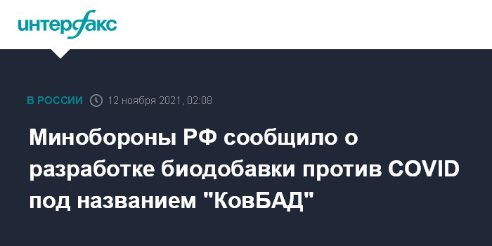 Минобороны РФ сообщило о разработке биодобавки против COVID под названием "КовБАД"