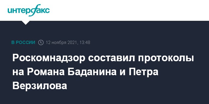 Москва. 12 ноября. INTERFAX.RU - Роскомнадзор (РКН) составил протоколы о нарушении порядка деятельности СМИ-иноагента в отношении бывшего главного редактора "Проекта" (нежелательная в РФ организация) Романа Баданина (признан в РФ СМИ-иноагентом) и издателя "Медиазоны" Петра Верзилова ("Медиазона и Верзилов признаны в РФ СМИ-иноагентами).