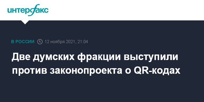 Москва. 12 ноября. INTERFAX.RU - Фракция "Единой России" в Госдуме поддержит правительственные законопроекты о введении обязательных QR-кодов для доступа в общественные места и на поезда и самолеты, еще две фракции, вероятно, выступят против.