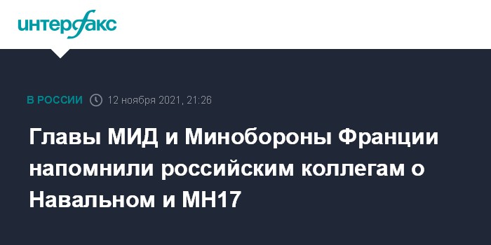 Главы МИД и Минобороны Франции напомнили российским коллегам о Навальном и МН17