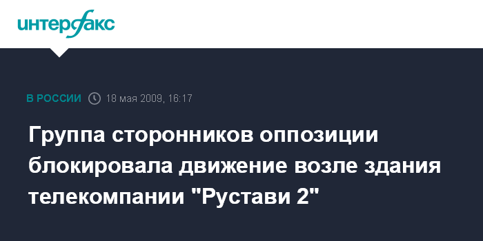 Москва. 18 мая. INTERFAX.RU - Несколько десятков сторонников оппозиции в понедельник провели акцию протеста у здания телекомпании "Рустави 2". На 15 минут ими было перекрыто автомобильное движение на проспекте Важа Пшавела.