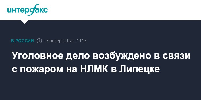Москва. 15 ноября. INTERFAX.RU - В Липецке возбуждено уголовное дело о взрыве и пожаре на угольном складе НЛМК. Как сообщили в СК, его расследуют по статье о нарушении требований промышленной безопасности опасных производственных объектов, повлекшее по неосторожности причинение тяжкого вреда здоровью человека (ч. 1 ст. 217 УК).