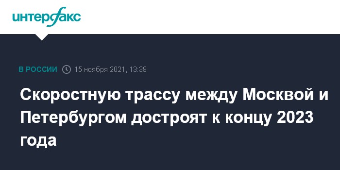 Москва. 15 ноября. INTERFAX.RU - Первая трасса, соединяющая Москву и Санкт-Петербург без единого перекрестка, будет достроена к концу 2023 года, сообщил глава ГК "Российские автомобильные дороги" Вячеслав Петушенко.