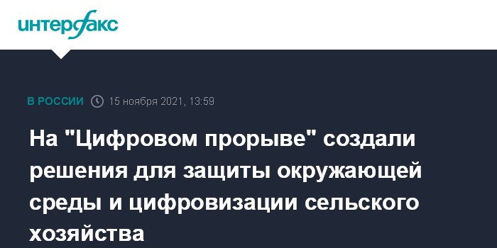 Москва. 15 ноября. INTERFAX.RU - Подведены итоги восьмого хакатона Всероссийского конкурса "Цифровой прорыв" — флагманского проекта президентской платформы "Россия — страна возможностей". Программисты со всей страны разработали прорывные решения по кейсам, посвященным цифровизации сельского хозяйства и продовольственной сферы, а также вопросам экологии.