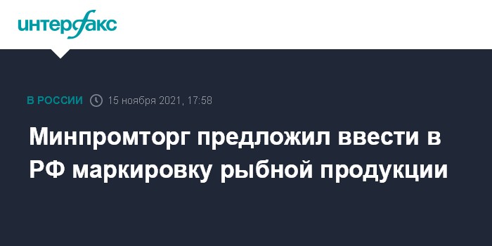 Москва. 15 ноября. INTERFAX.RU - Минпромторг предлагает ввести в РФ маркировку широкого спектра рыбной продукции, она может коснуться 1,8 тыс. предприятий, заявил статс-секретарь - замглавы ведомства Виктор Евтухов на заседании Совета по вопросам АПК и природопользования при Совете Федерации на тему "Вопросы законодательного обеспечения мер по предупреждению, сдерживанию и ликвидации незаконного, несообщаемого и нерегулируемого промысла (ННН-промысел)" в понедельник.