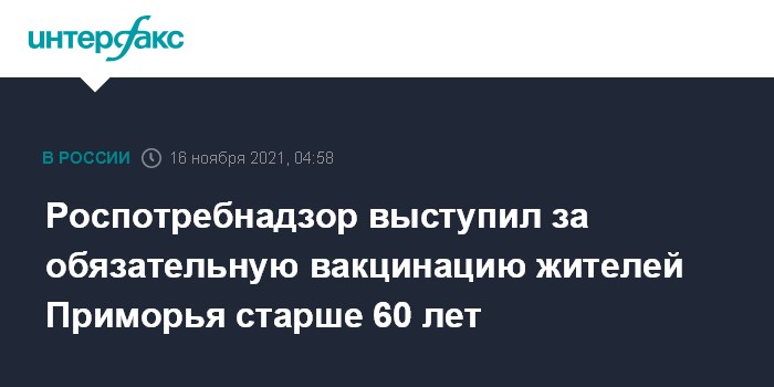 Роспотребнадзор выступил за обязательную вакцинацию жителей Приморья старше 60 лет