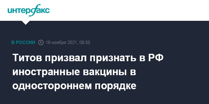 Титов призвал признать в РФ иностранные вакцины в одностороннем порядке